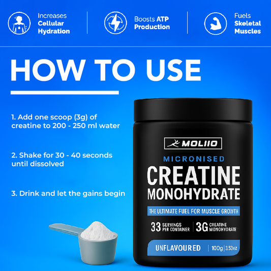 MOLLIO™ Micronised Creatine Monohydrate (100g, 33 Servings)